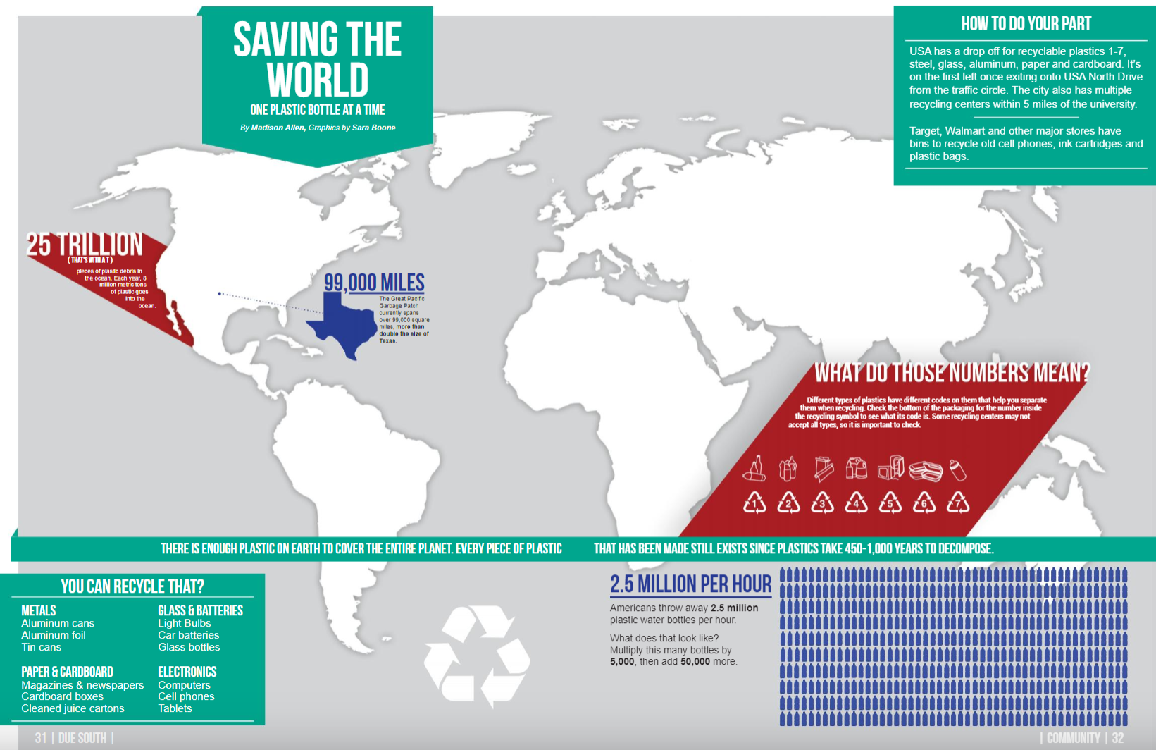 Article for Due South for fall 2018 issue. An infographic on plastic and recycling!